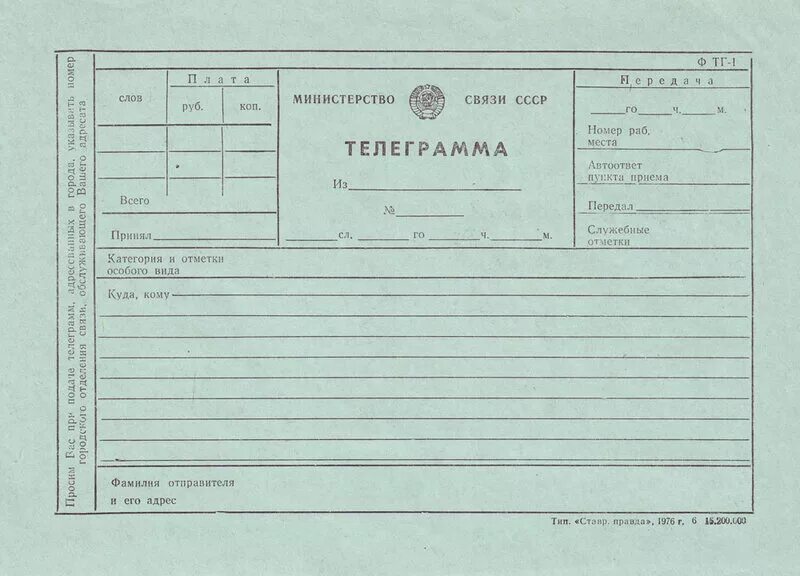 Телеграмма шаблон.