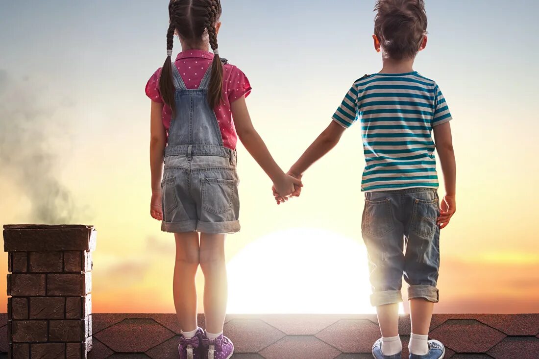 Дети держатся за руки силуэт.