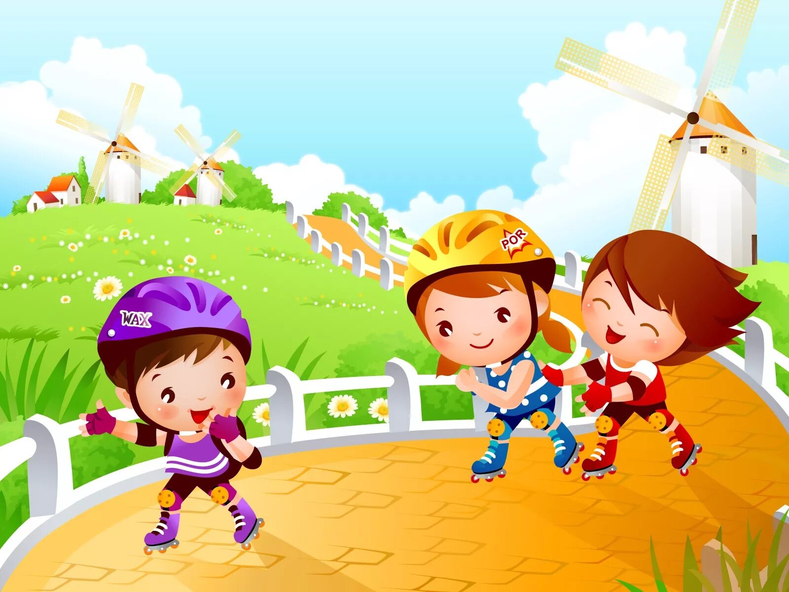 Мультяшные дети на природе.