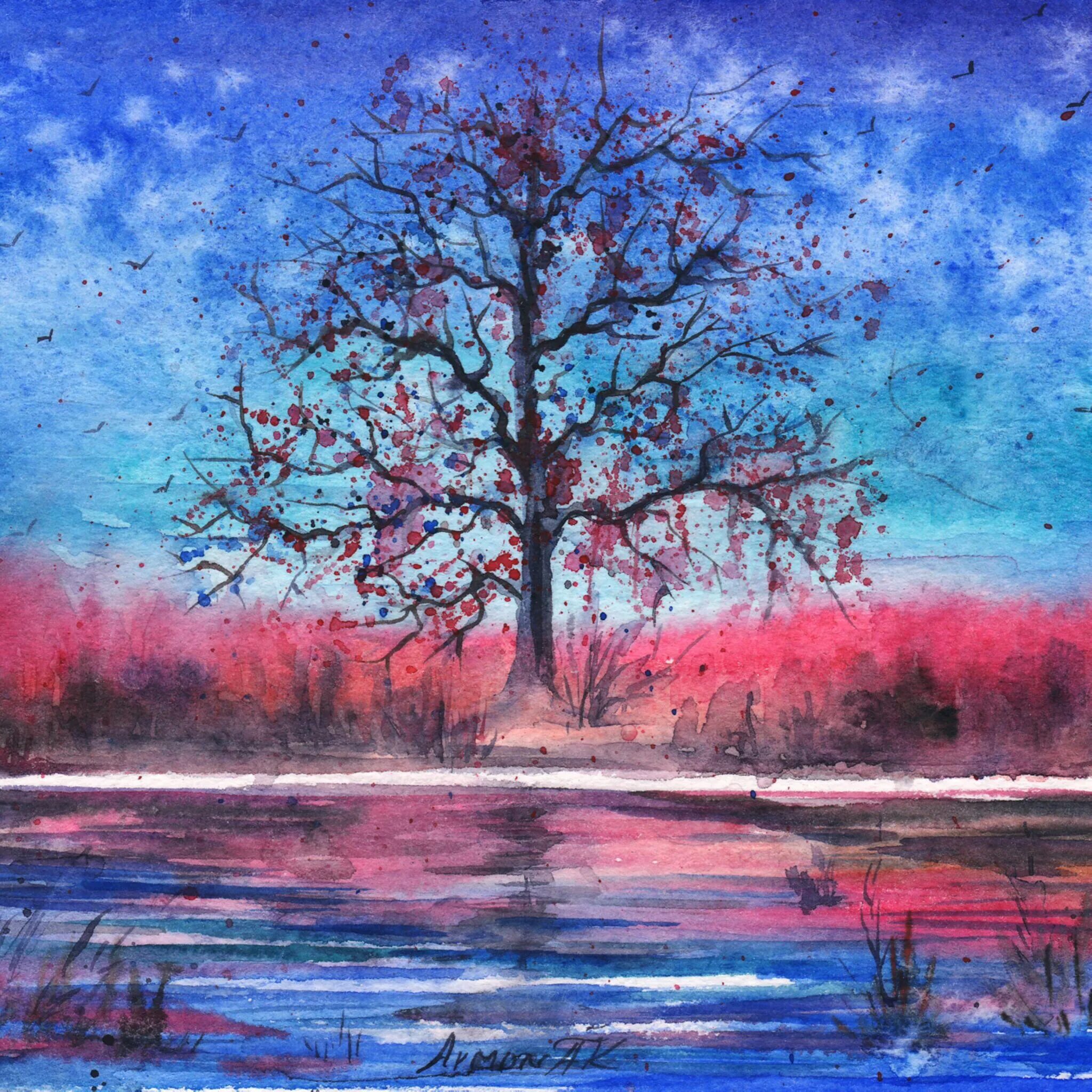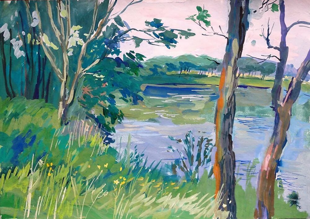 Пейзаж гуашью.