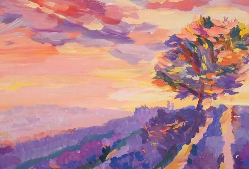 Пейзаж гуашью профессиональный.