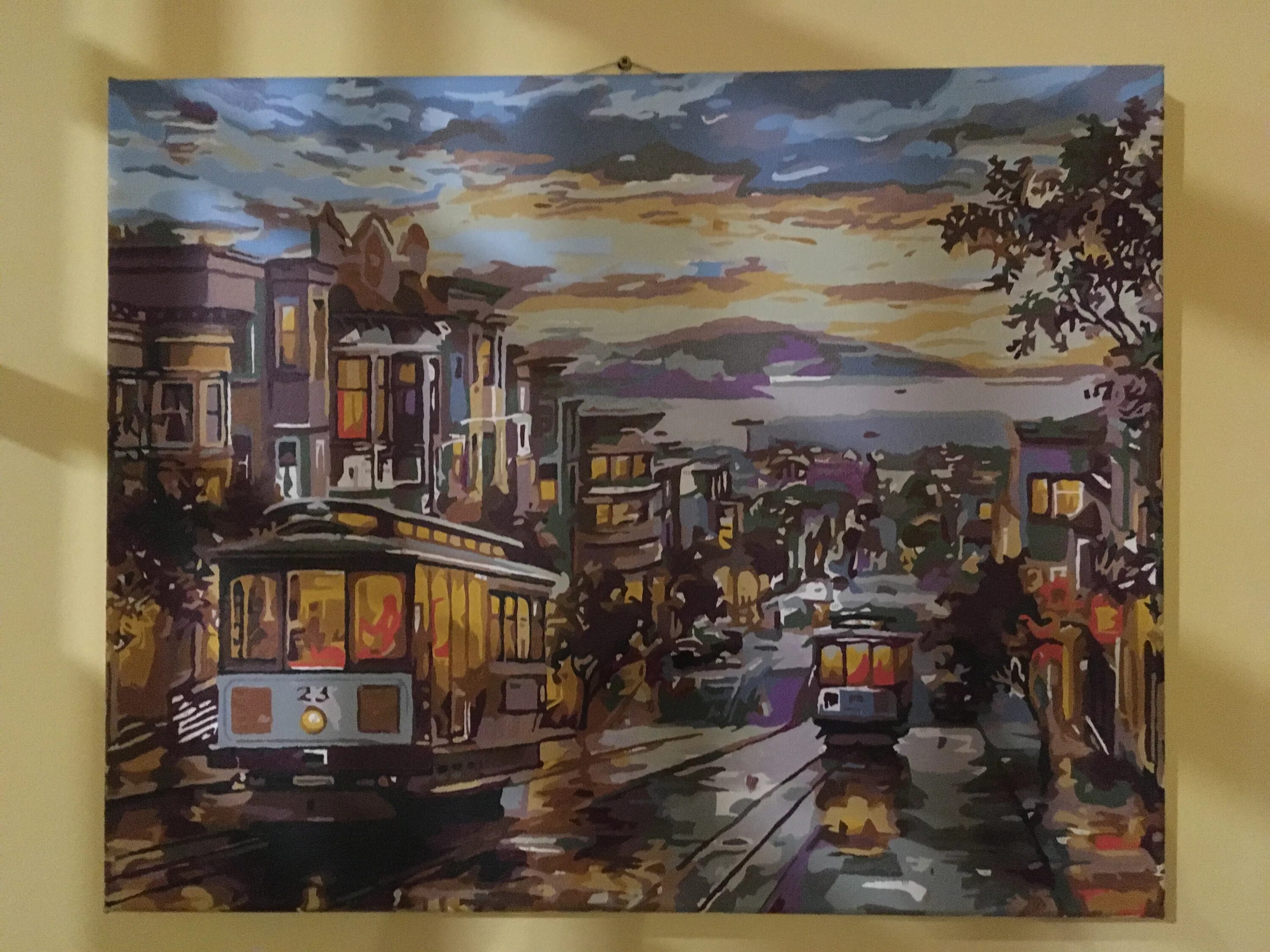 Картина по номерам с мостом и городом.