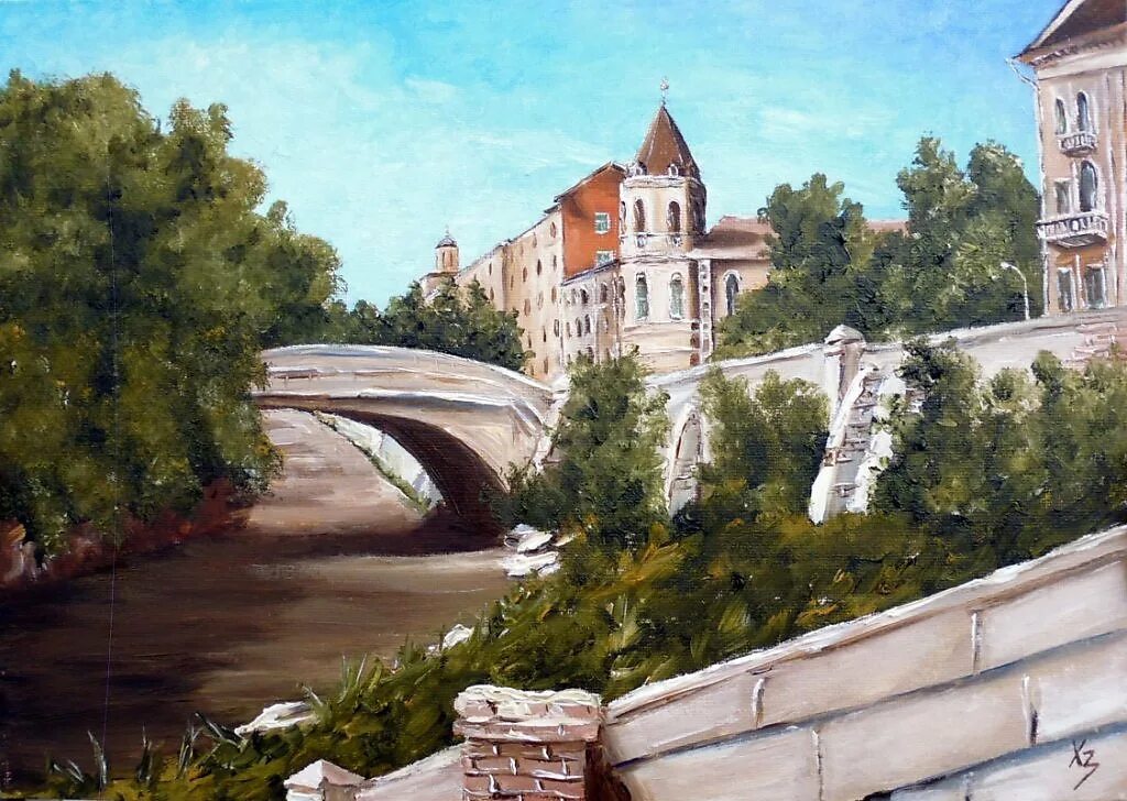 Живопись Воронеж старый каменный мост.