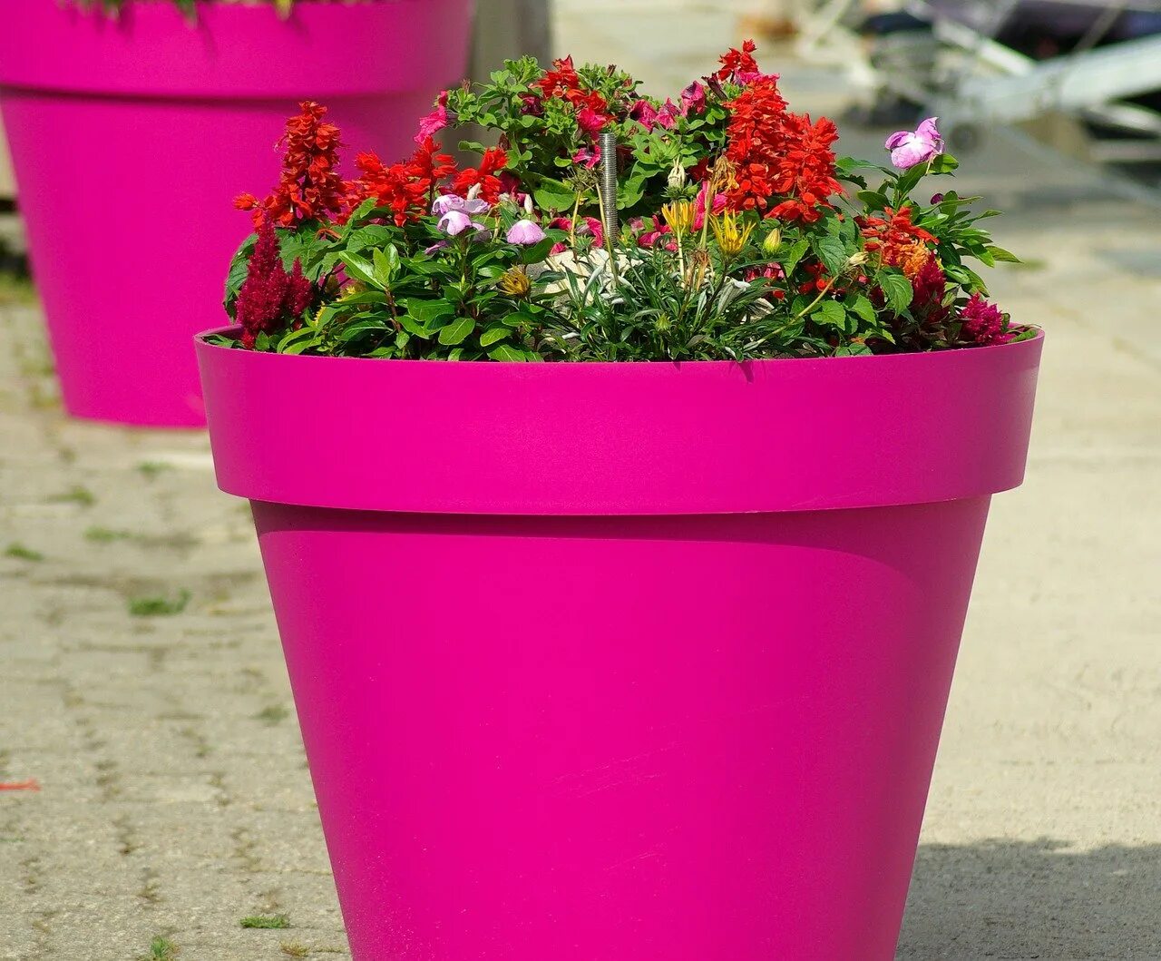 Высокие кашпо для цветов.