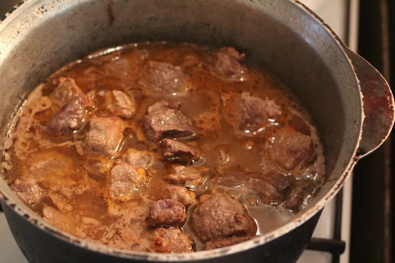 Мясо в чугунной кастрюле в духовке.