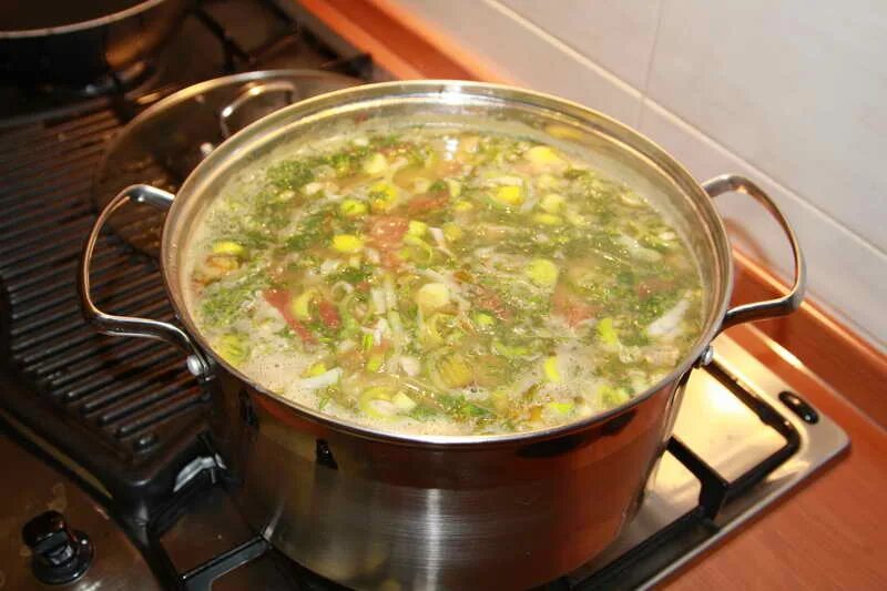 Суп на плите.