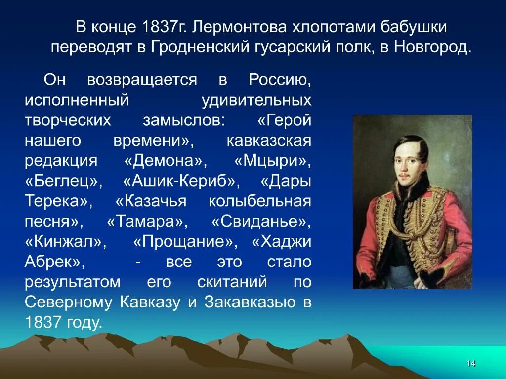 Жизнь Лермонтова в 1837.