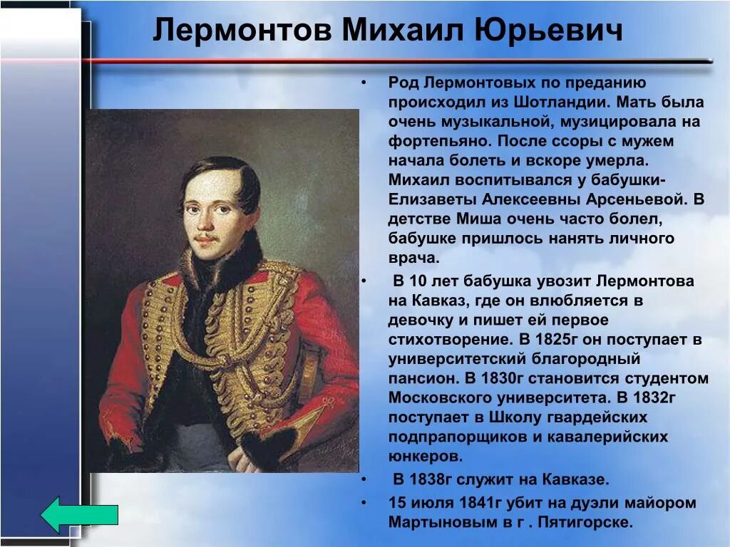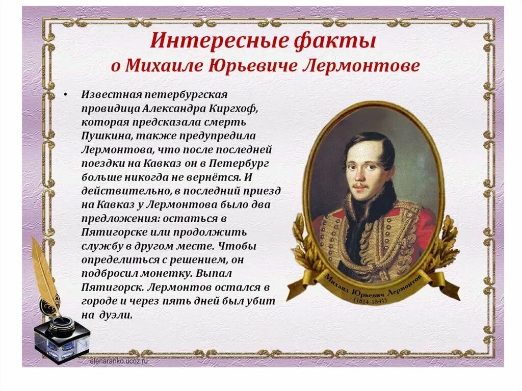 Даты жизни Лермонтова м.