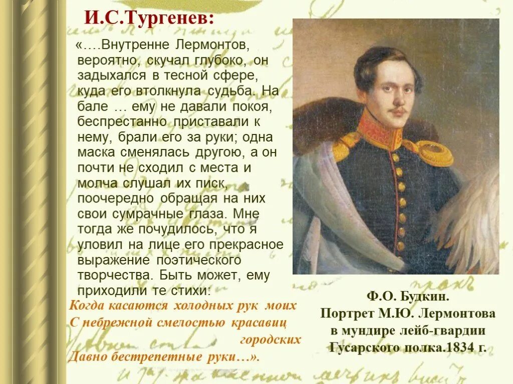 Михаил Юрьевич Лермонтов в гвардии.