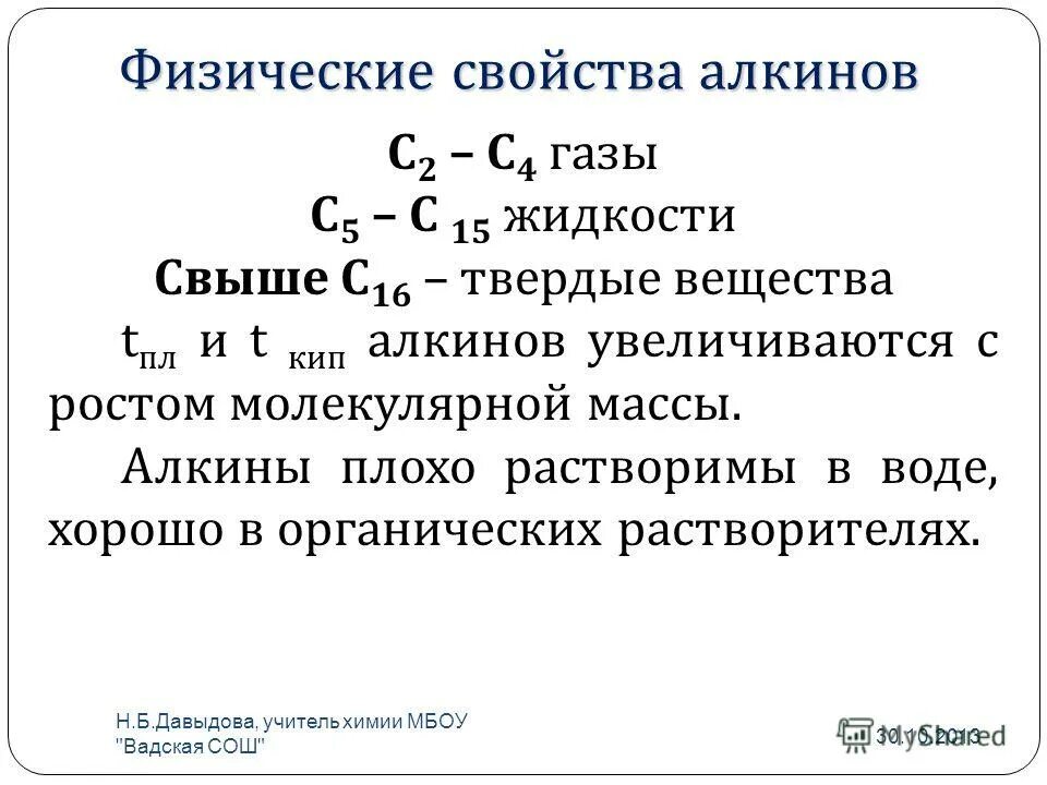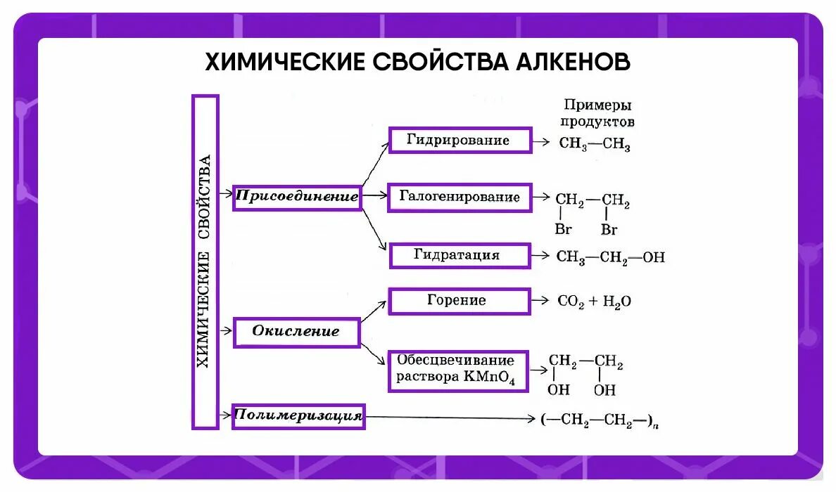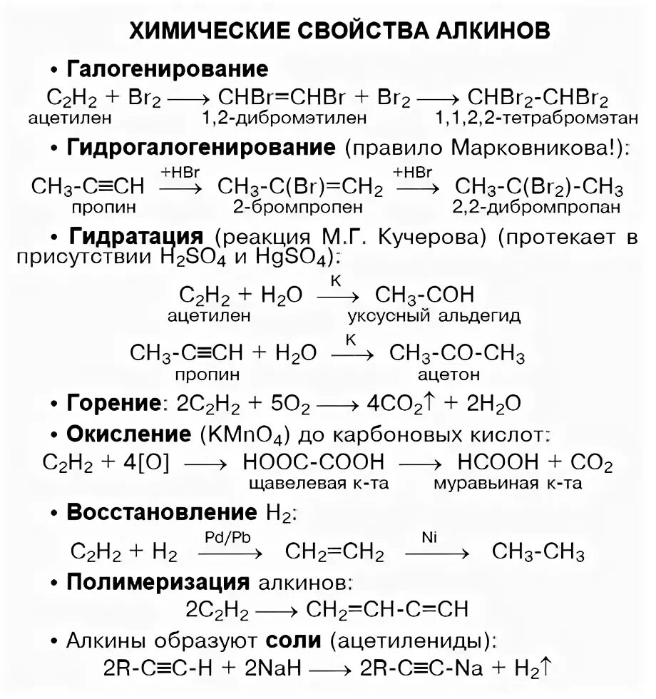 Химические реакции алкинов таблица.