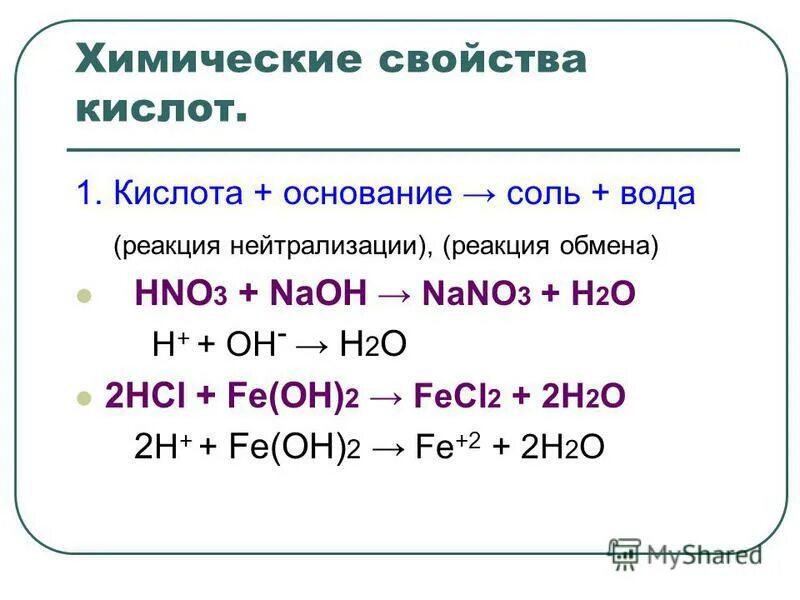 Химические свойства кислот
