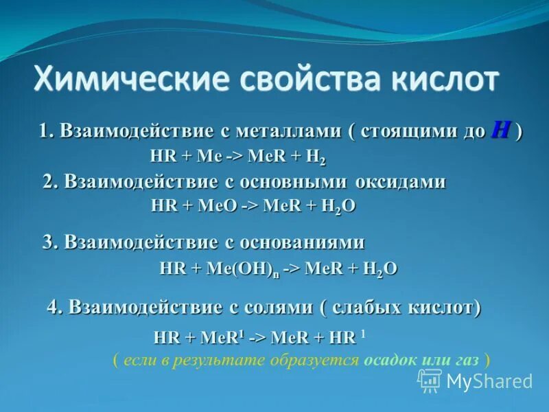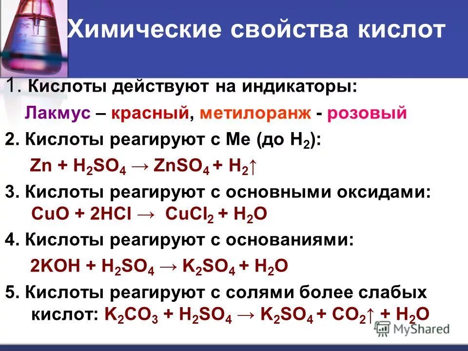 Химические свойства кислот.