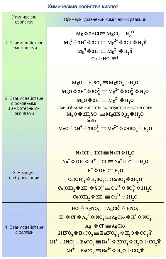 Химические свойства кислот таблица с примерами.