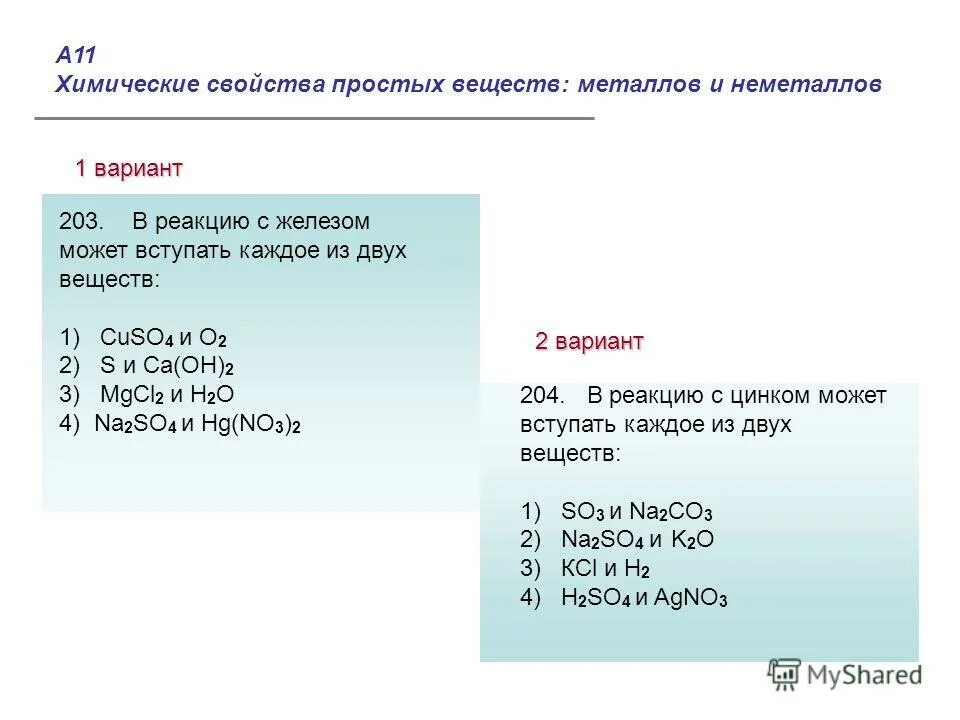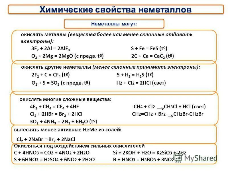 Химические свойства простых веществ.