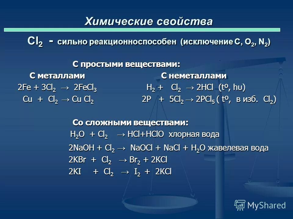Химические свойства реакции со сложными веществами.