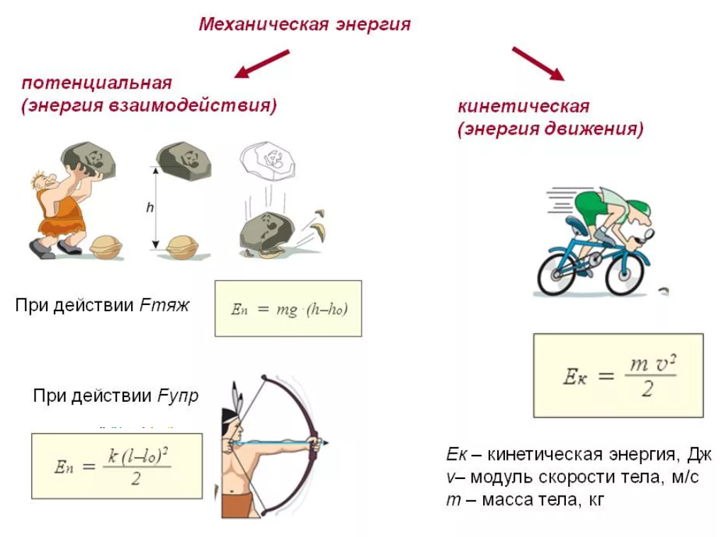 Кинетическая и потенциальная энергия рисунок.