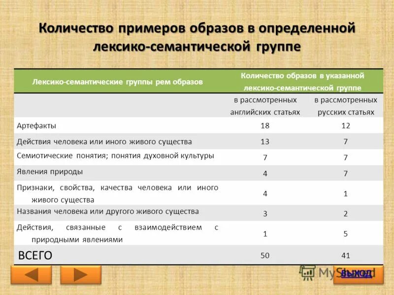 Количество образов.