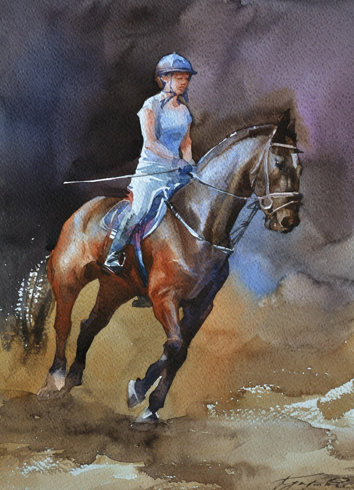 Картина девушка на лошади.
