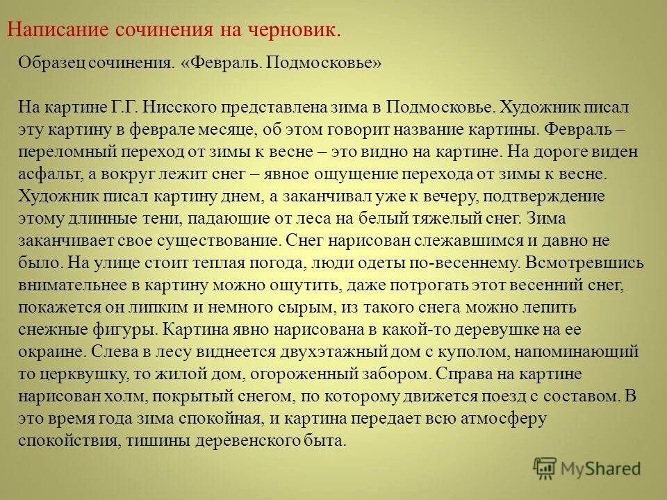 Конспект сочинения по картине