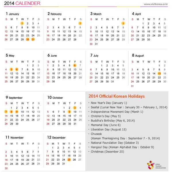 South Korea Calendar.
