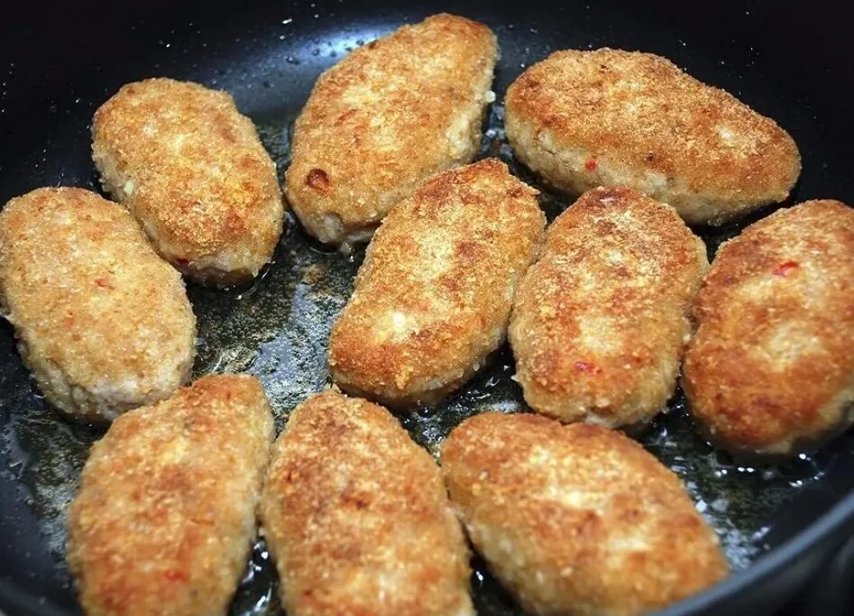 Куриные котлеты из фарша на сковороде сочные.