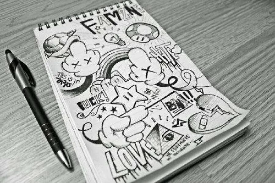 Рисунки ручкой в тетради.