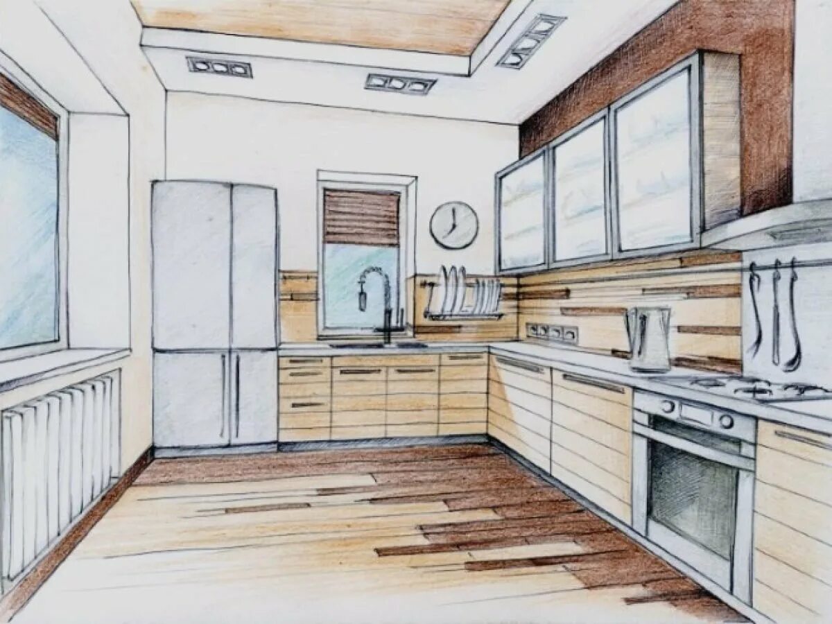 Интерьер кухни рисунок.
