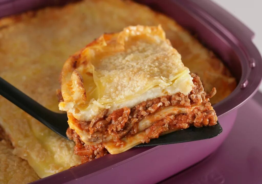 Лазанья с фаршем и соусом бешамель.