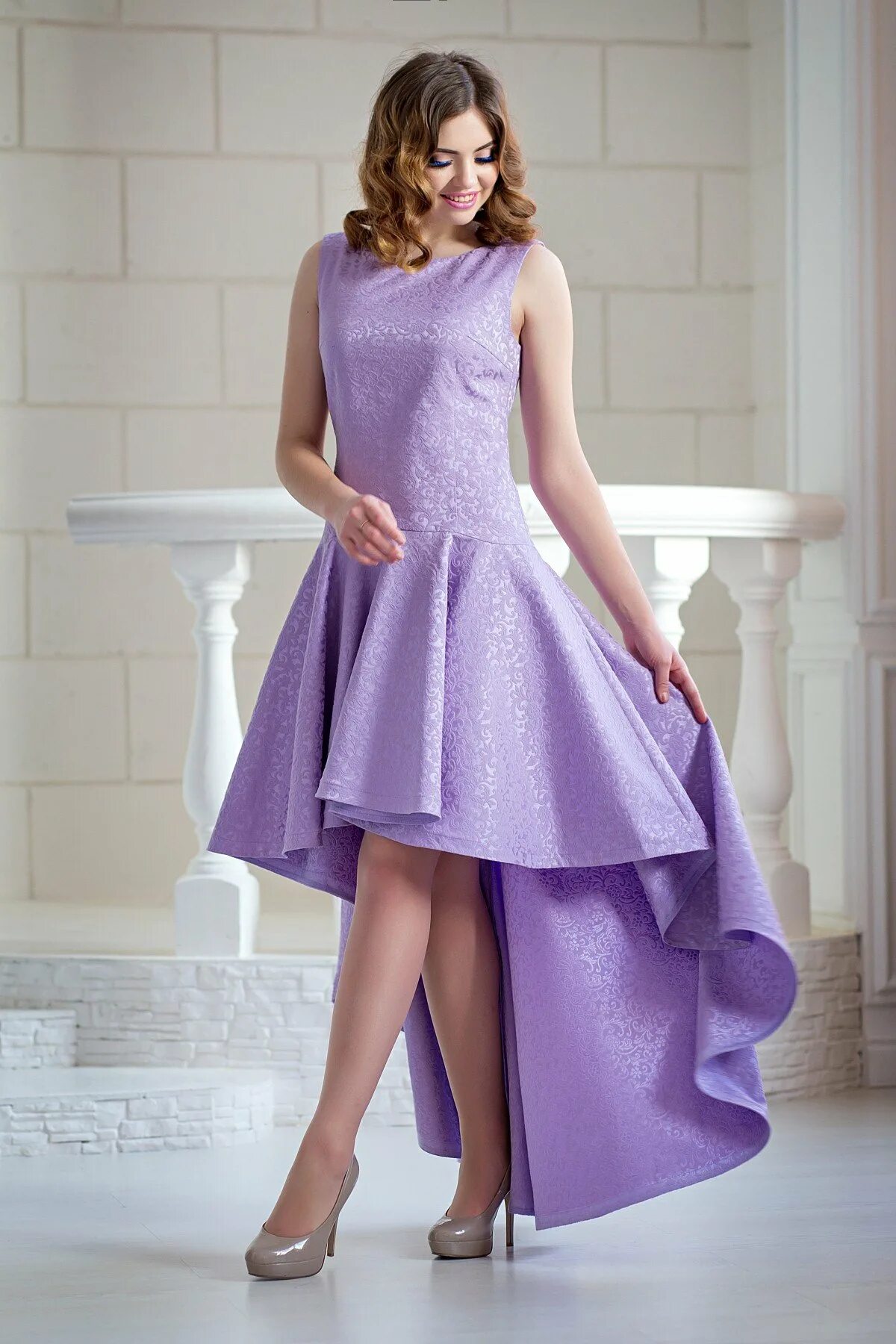 Красивое фиолетовое платье.