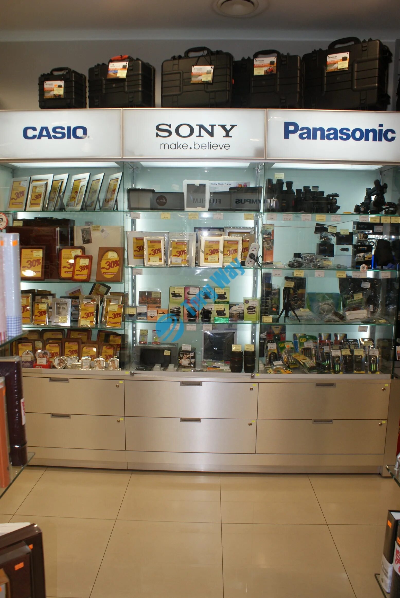 Выкладка фототоваров в магазине.