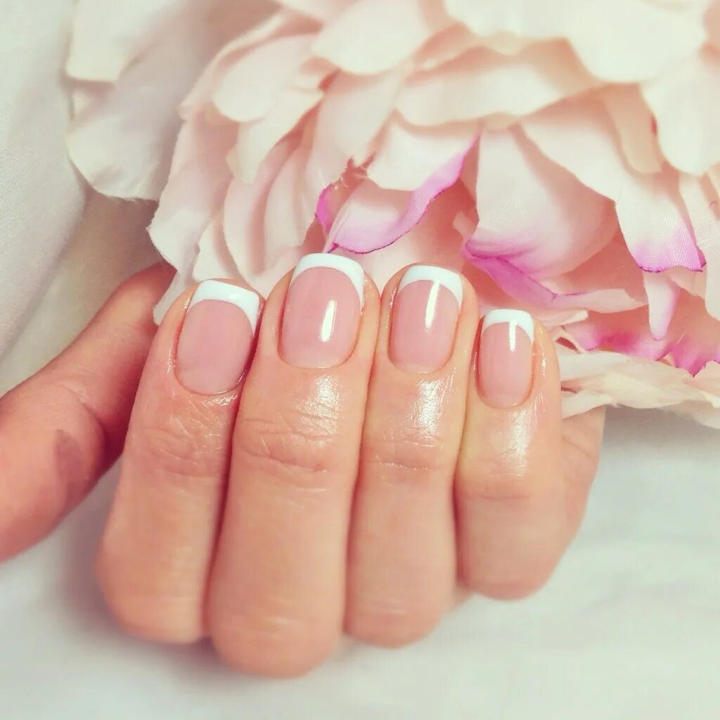 Французский маникюр на короткие ногти.