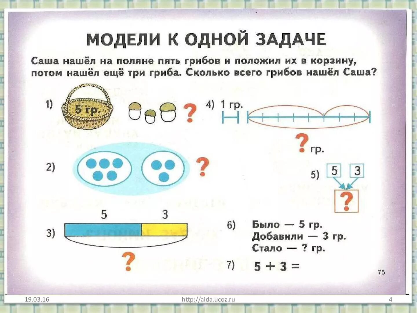 Математика 1 класс схемы решения задач.