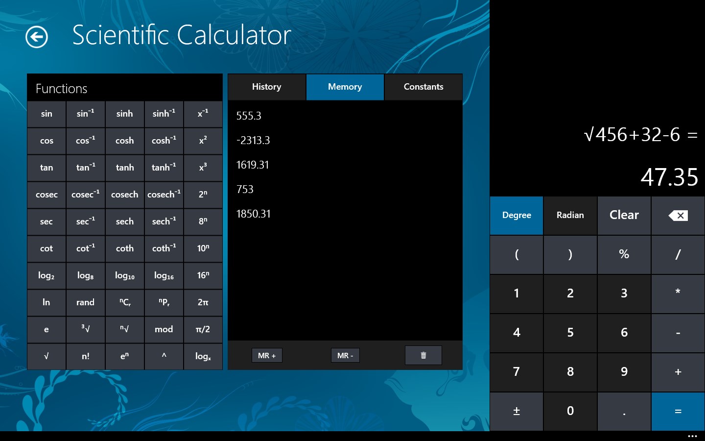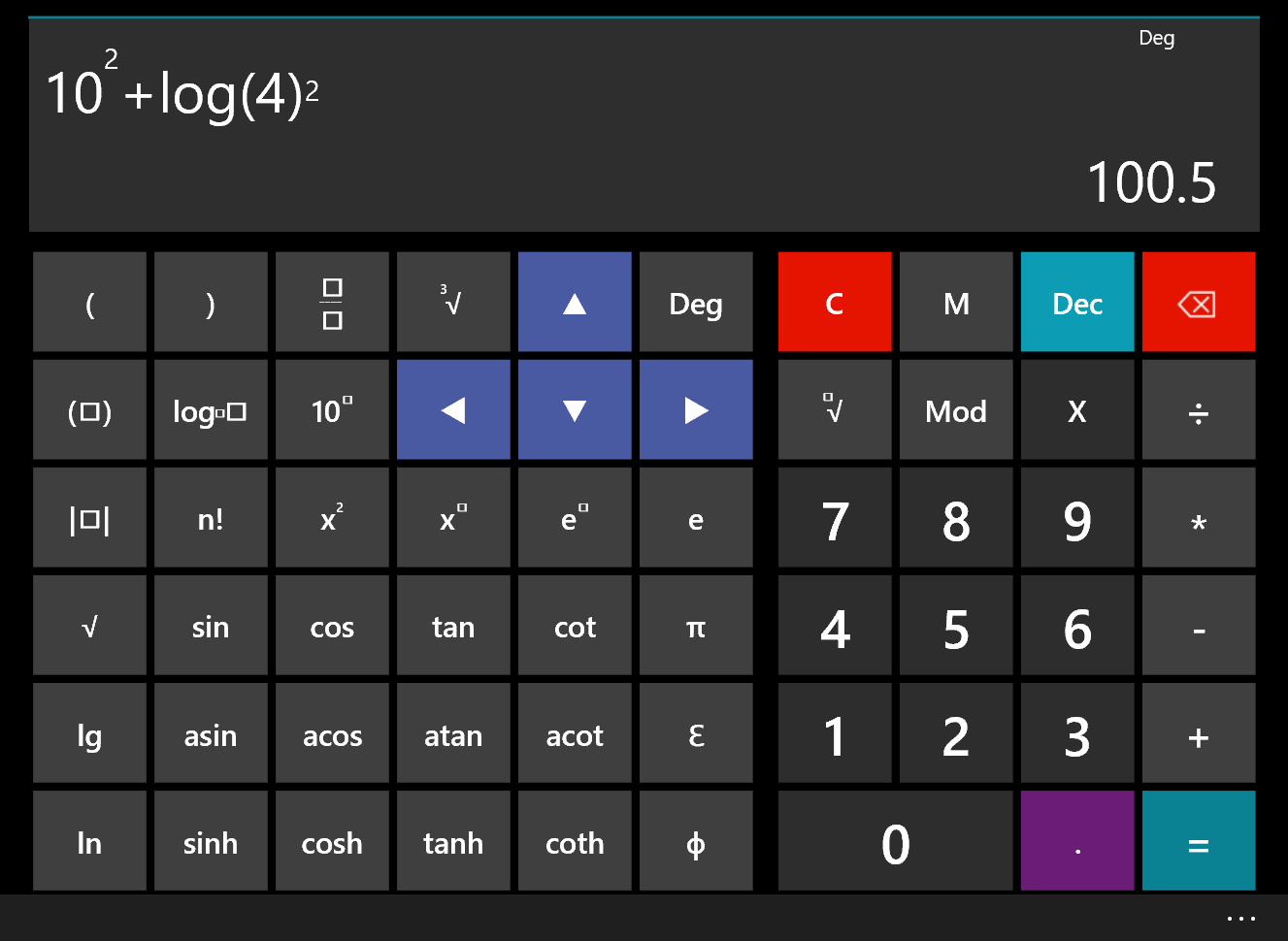 Инженерный калькулятор Windows 10.