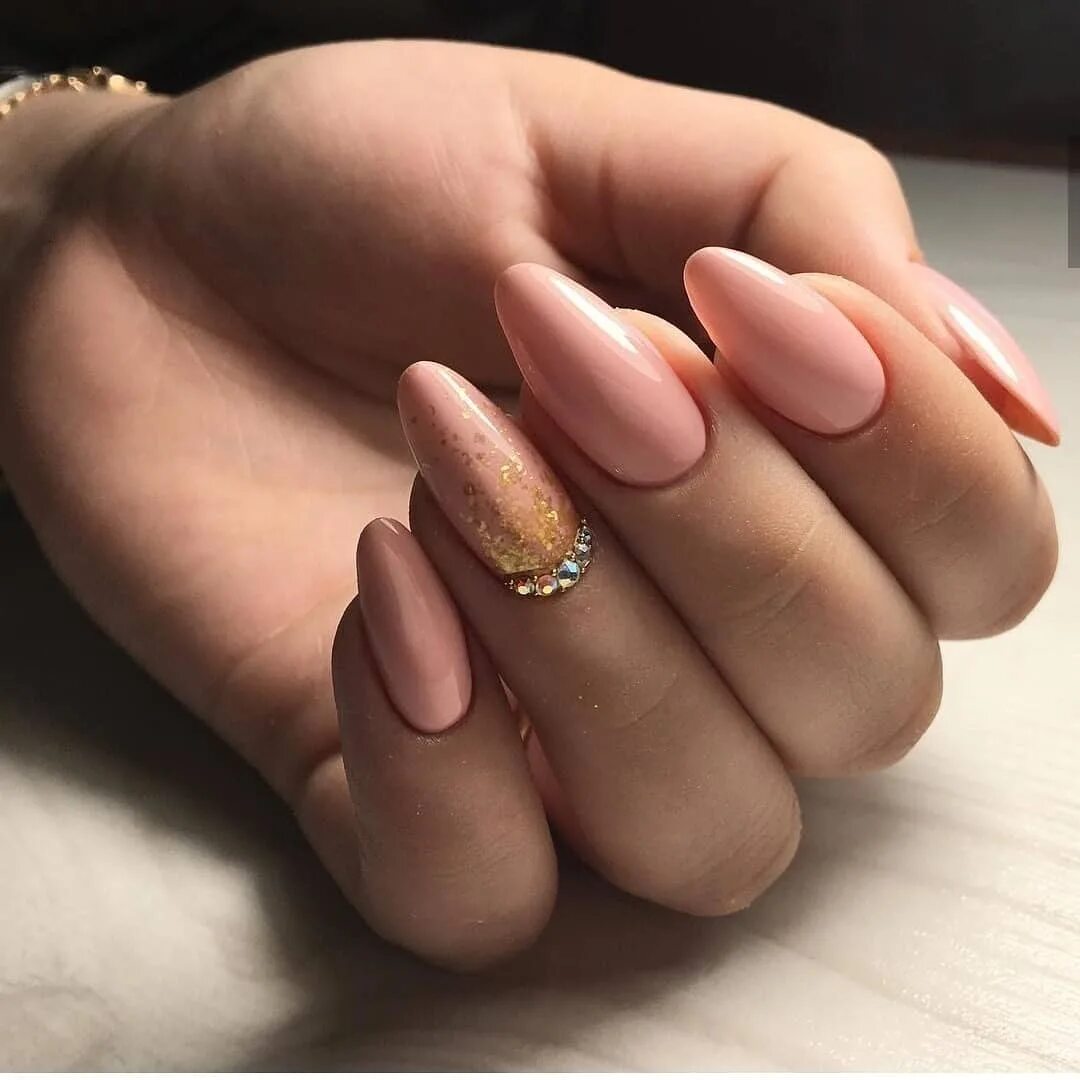 Маникюр нюд миндаль.