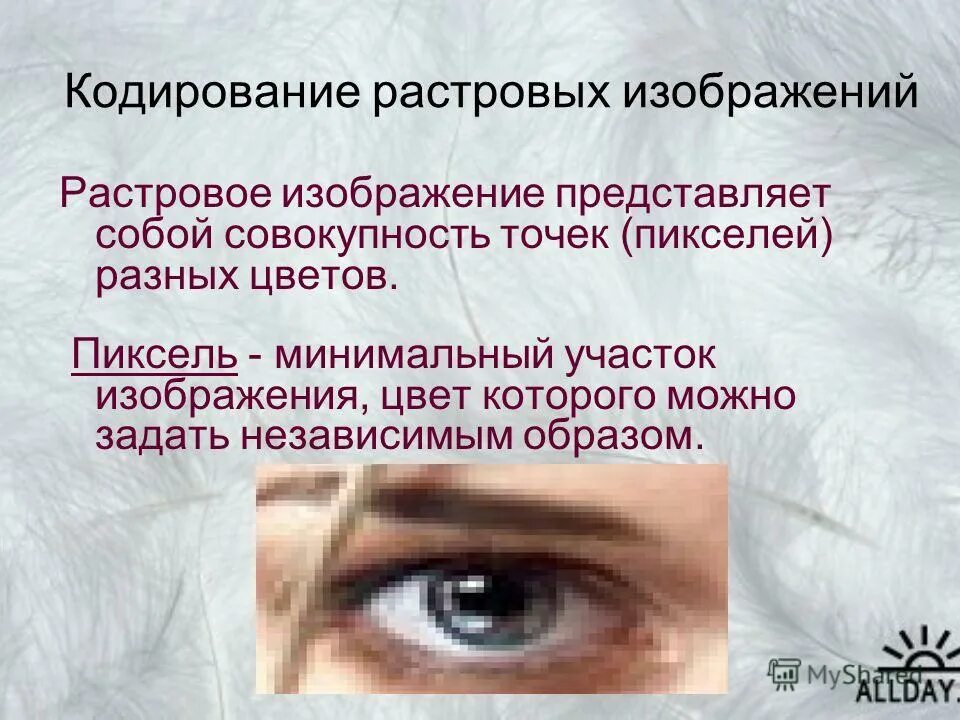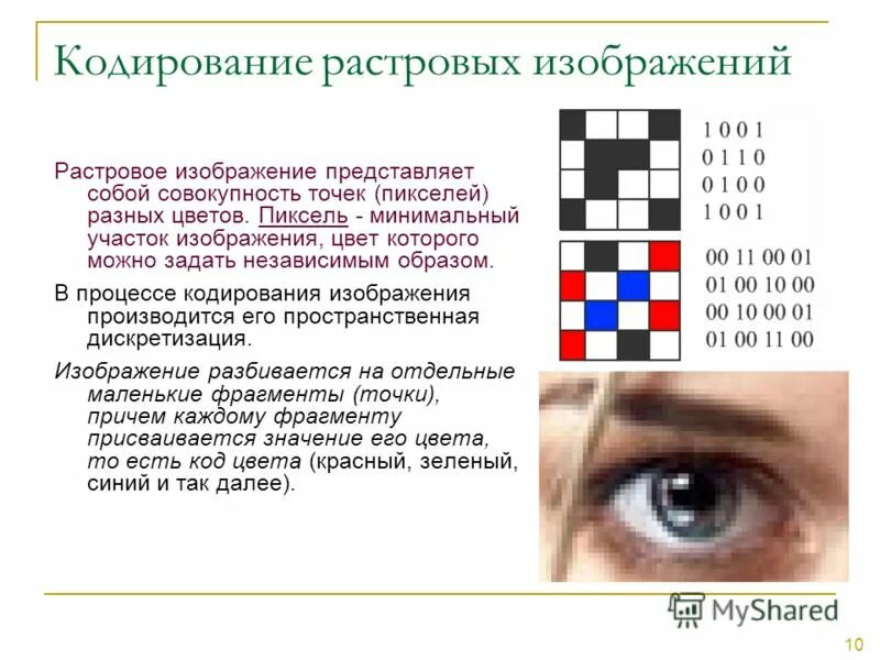 Кодирование изображений растровое изображение.