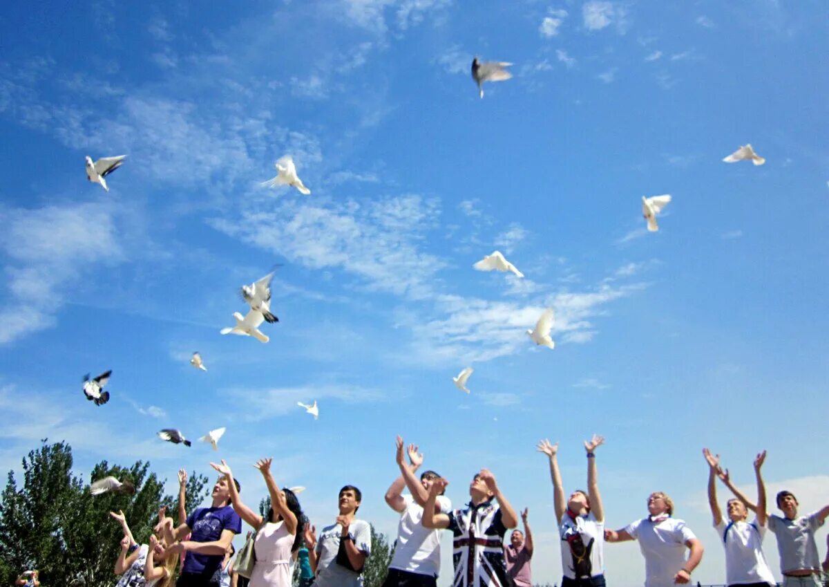 Голуби в небе.