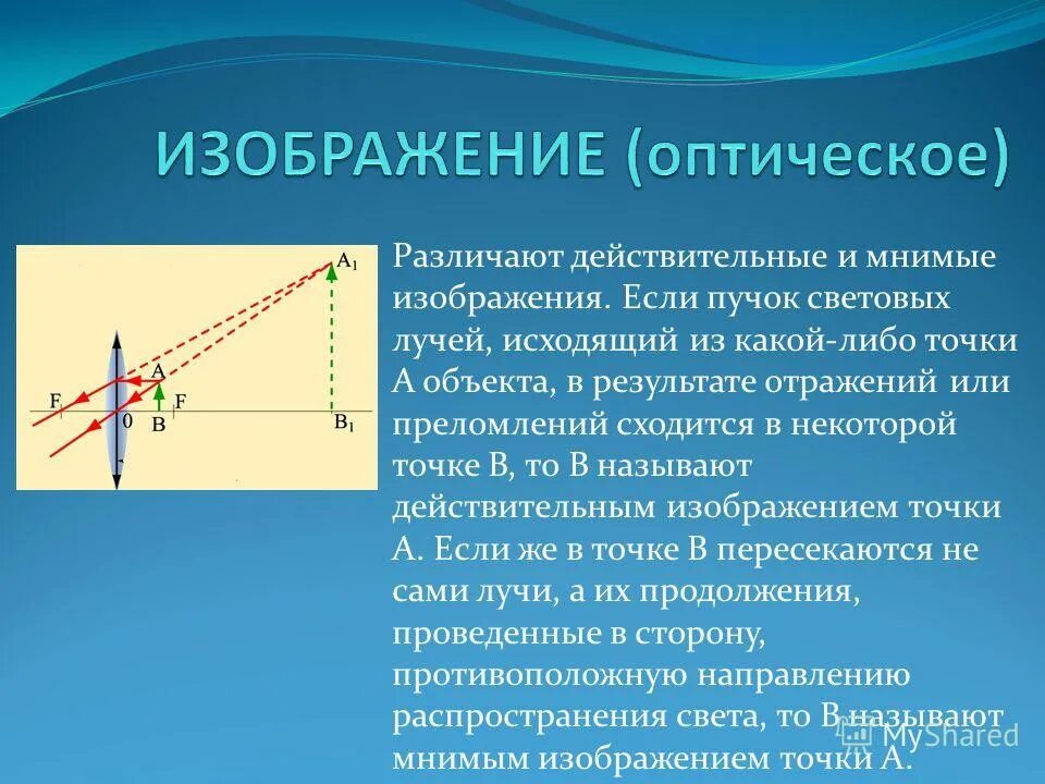 Действительное или мнимое изображение.
