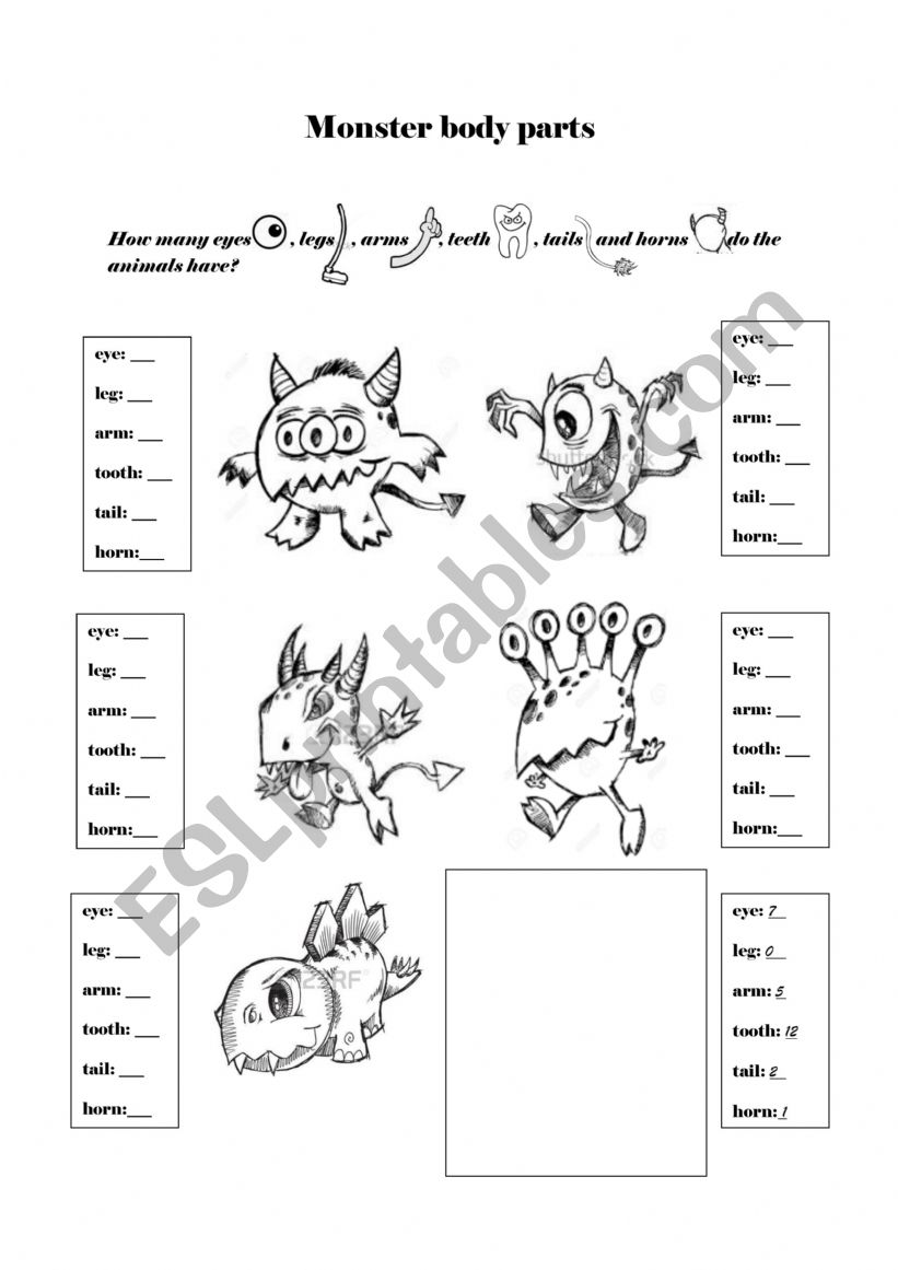 Body Parts Worksheets Monsters.