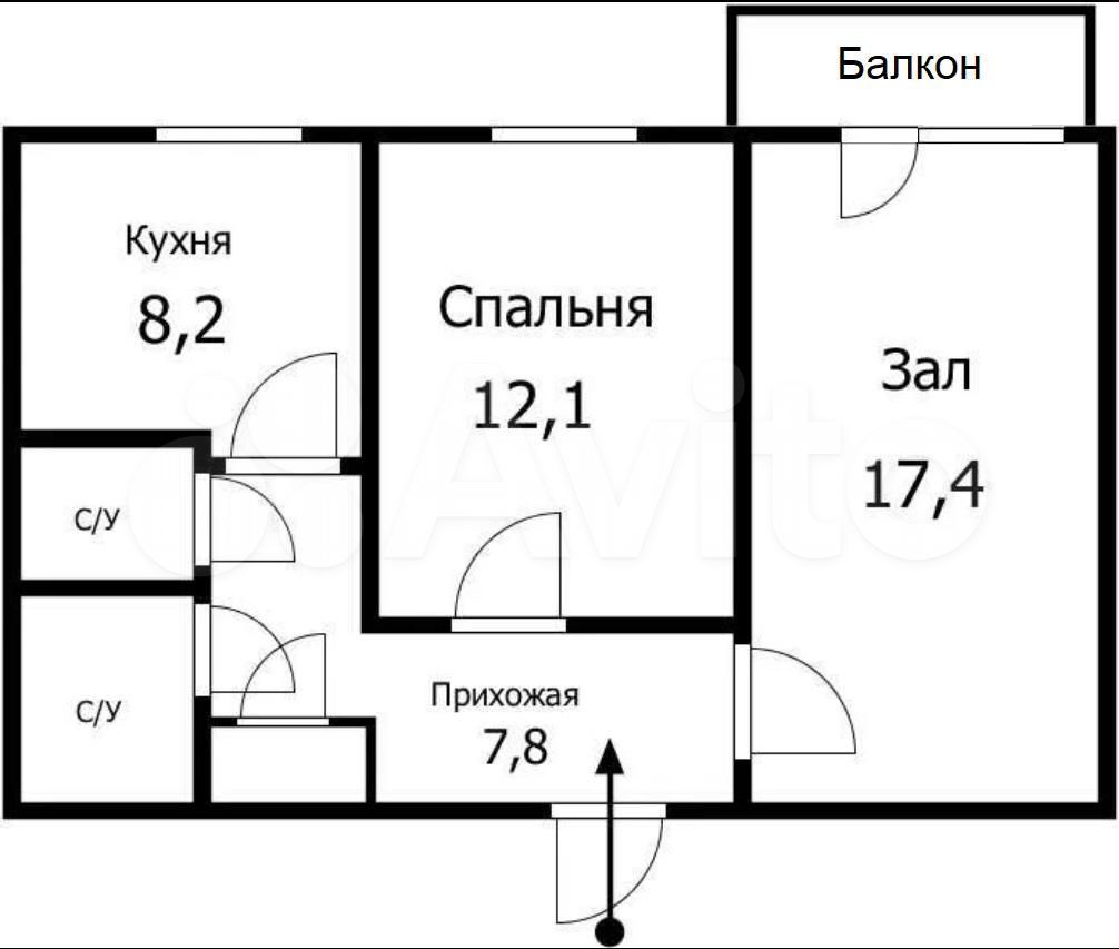 Схема 3х комнатной квартиры в панельном 9 этажном доме.