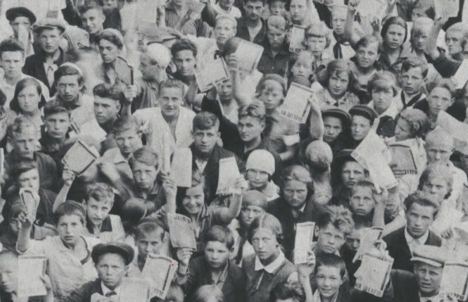 Ретро фото где тысячи людей изображают.