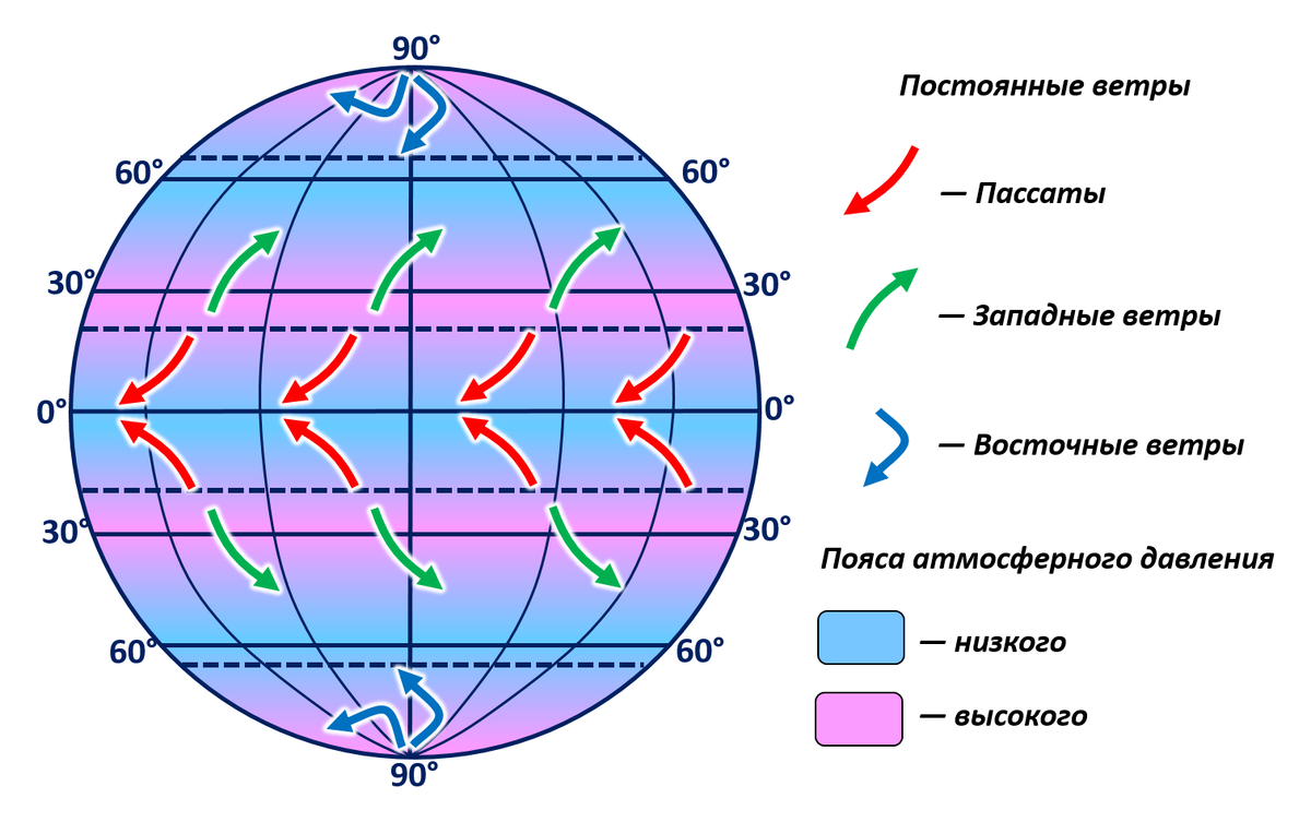 На каком рисунке правильно показано направление пассатов фото