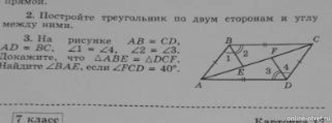 На рисунке ad CF ab Fe BC ed докажите что угол 1 равен углу 2.
