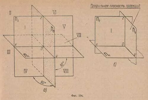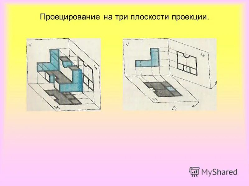 На рисунке а показан процесс проецирования предмета на три плоскости.