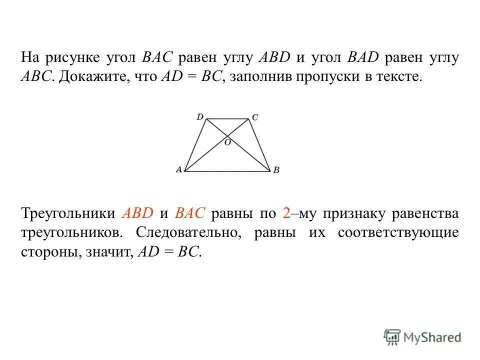 Докажите равенство треугольников ABC И ABC.