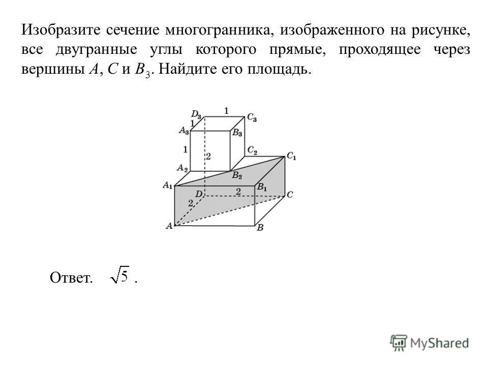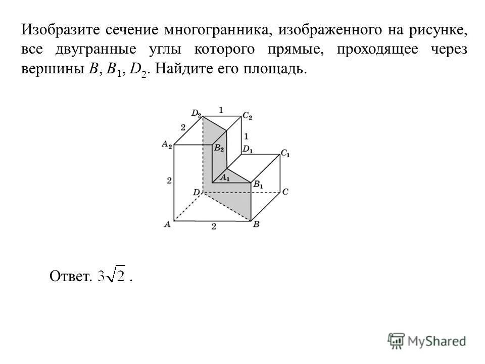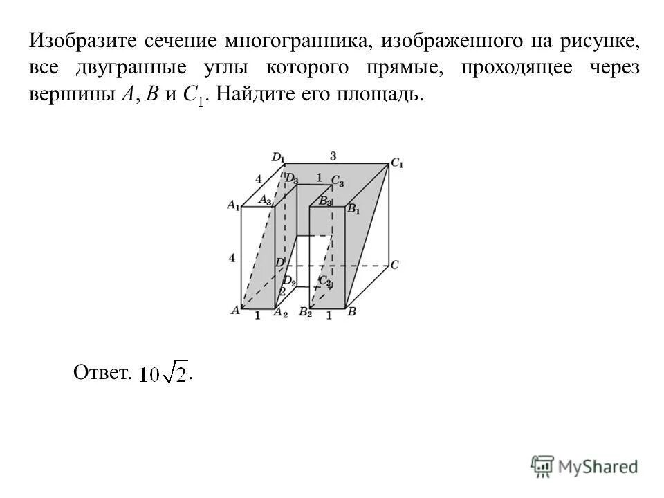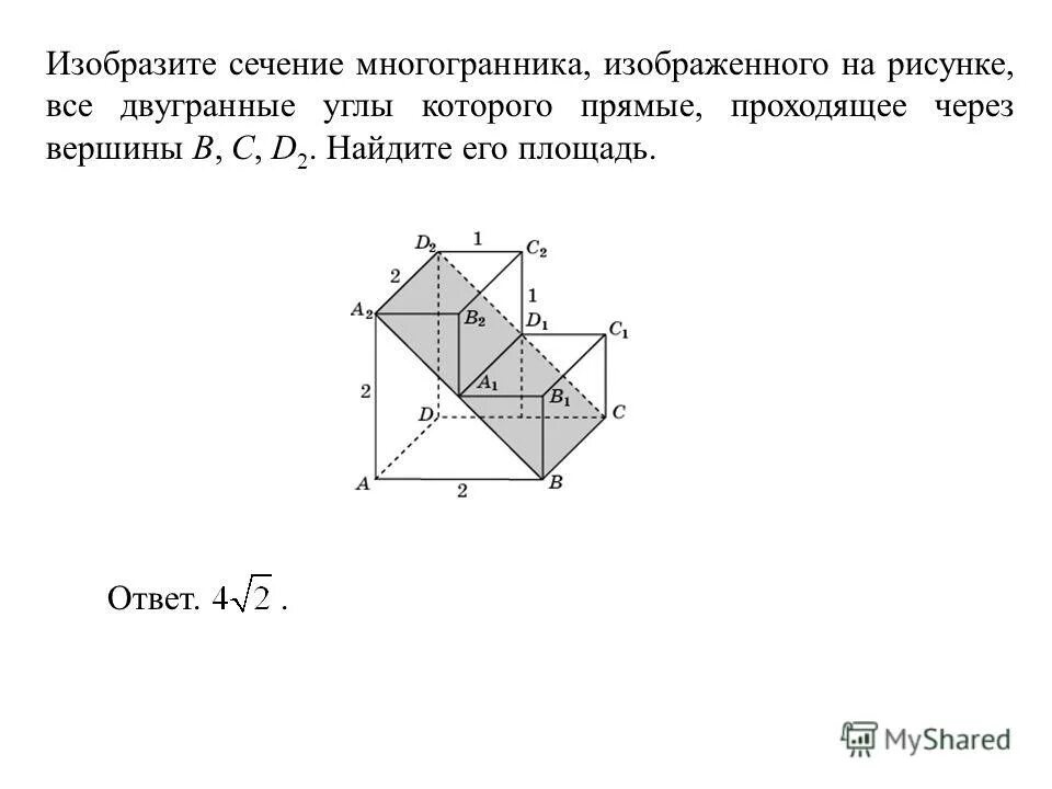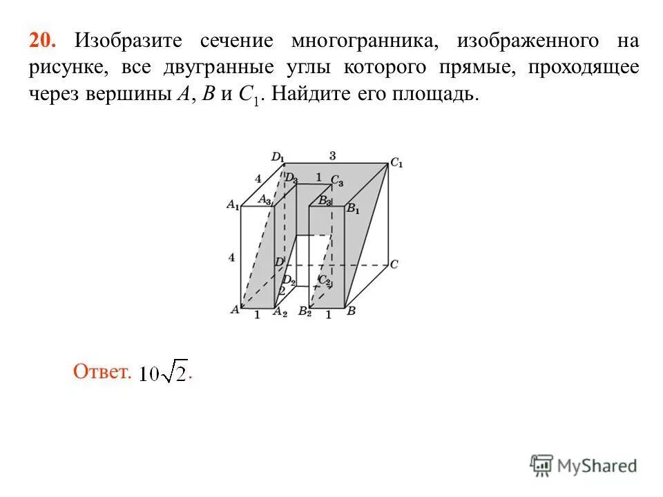 Найдите площадь сечения многогранника, проходящего через вершины.