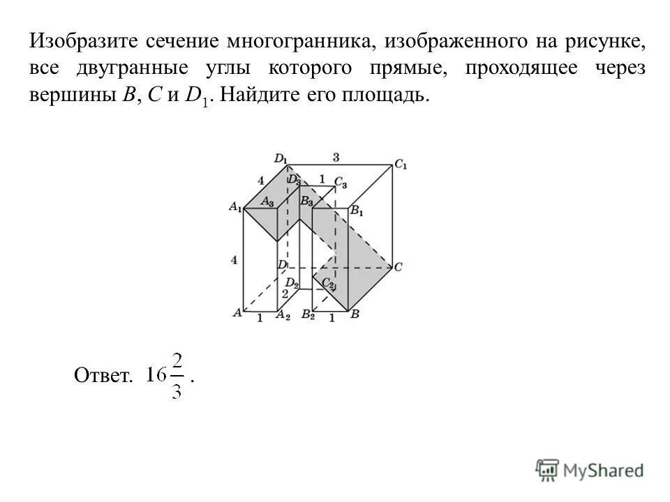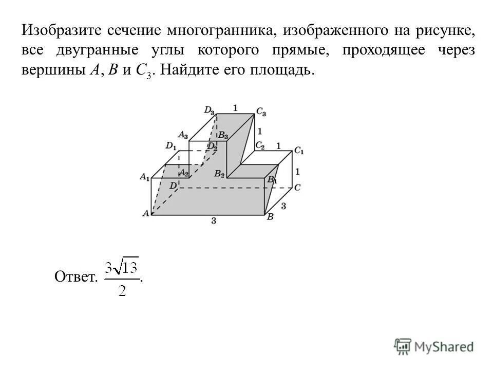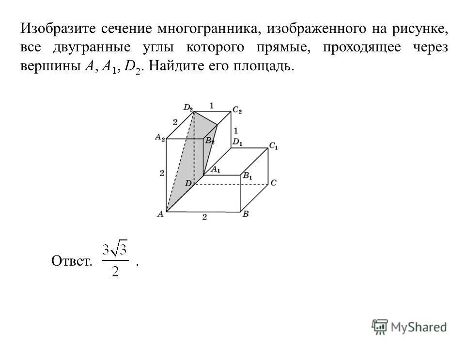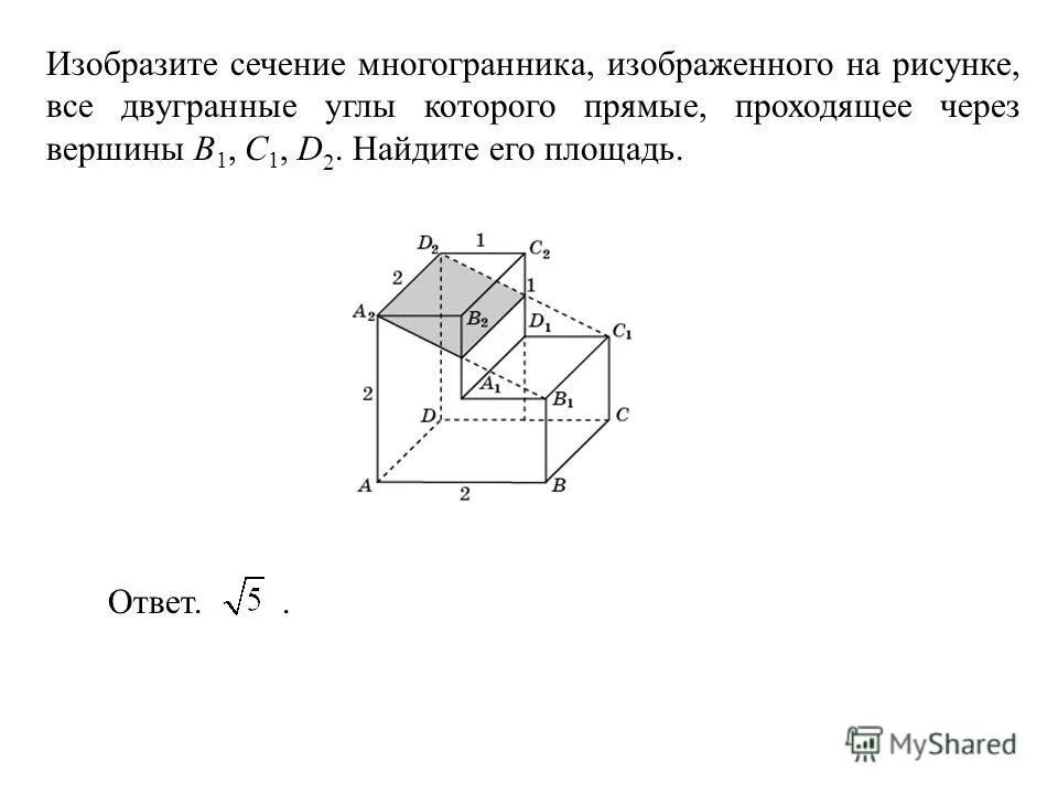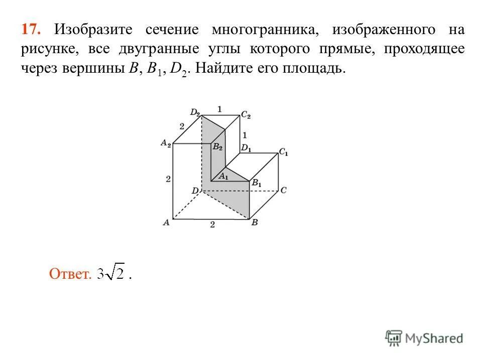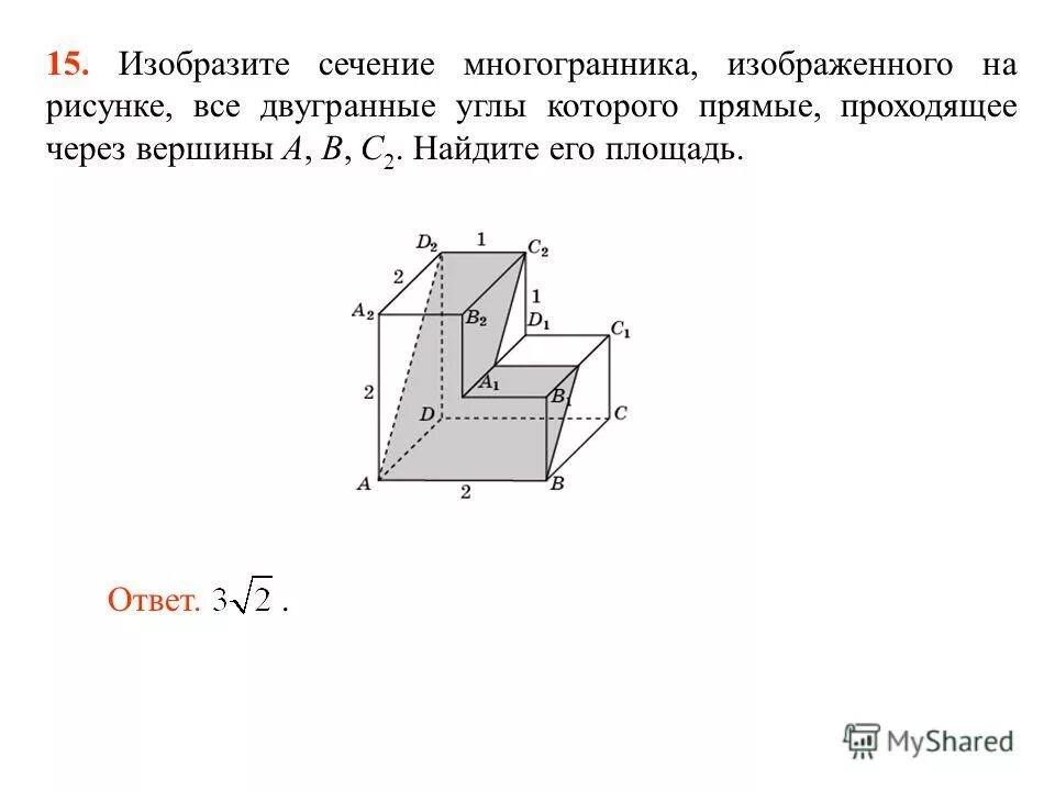 Найдите площадь сечения многогранника, проходящего через вершины.