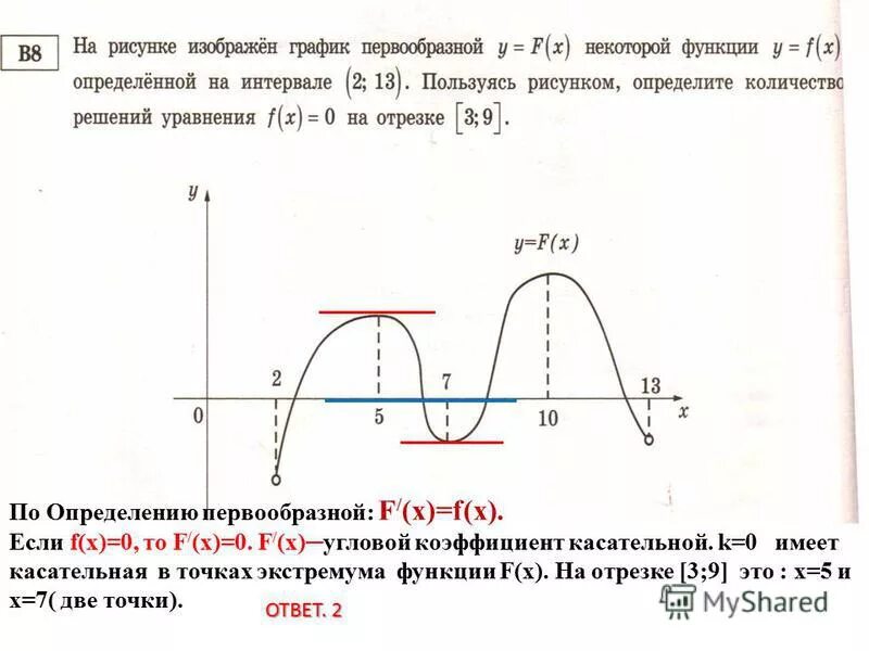 На рисунке изображена первообразная функции