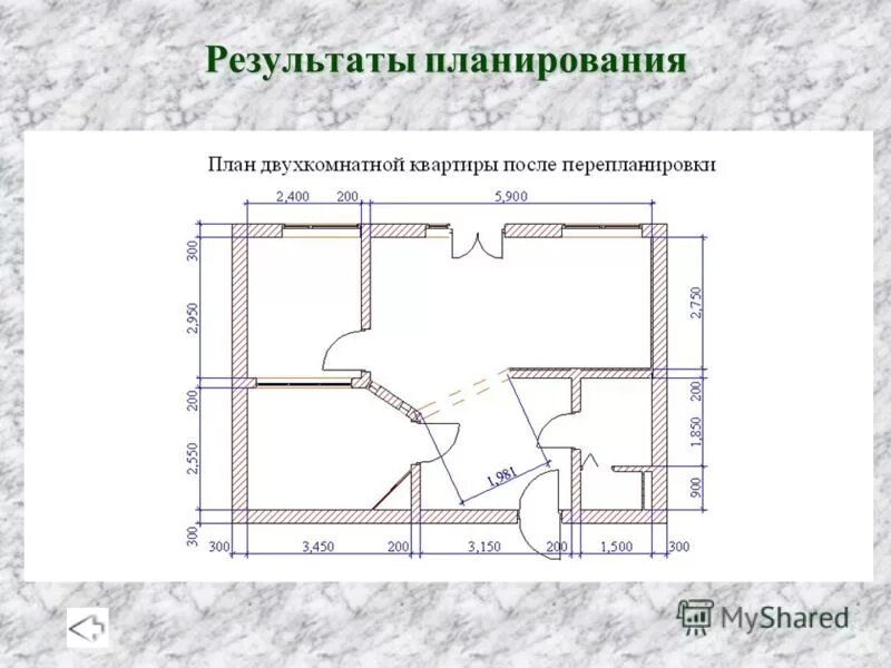 На рисунке план двухкомнатной квартиры