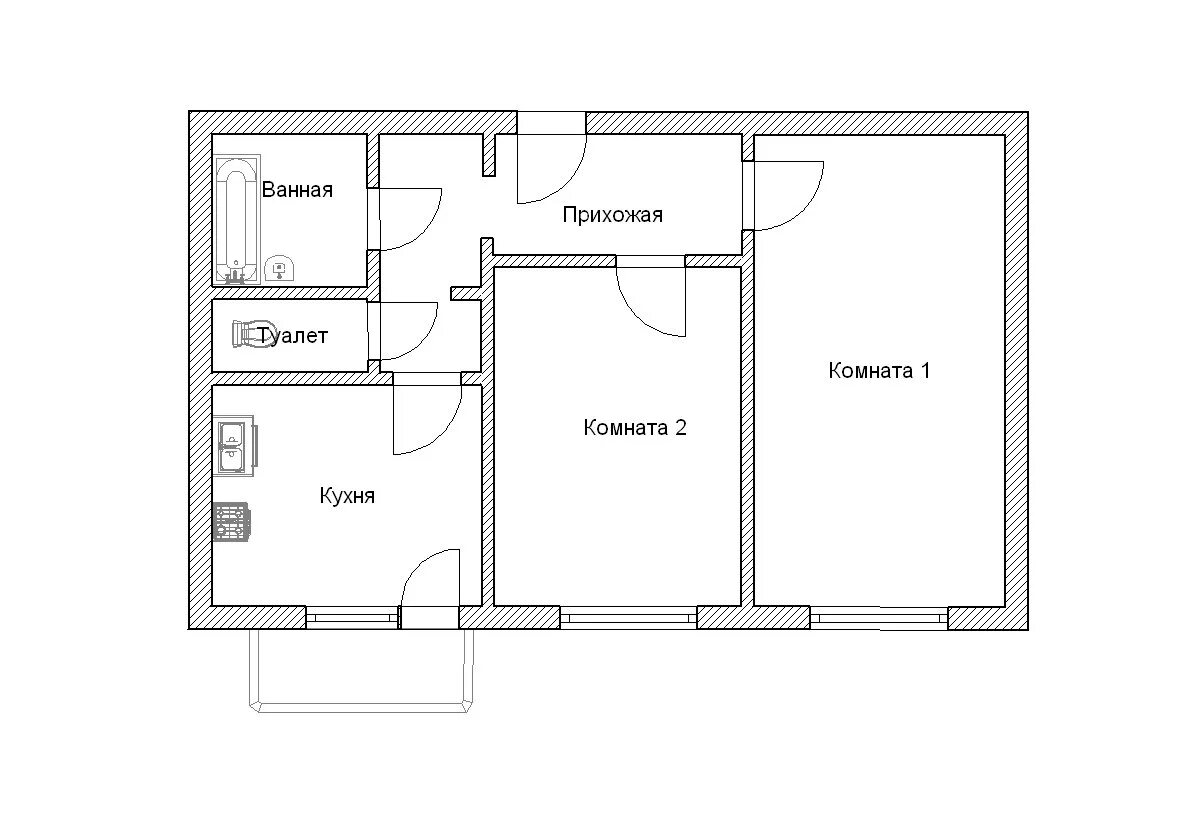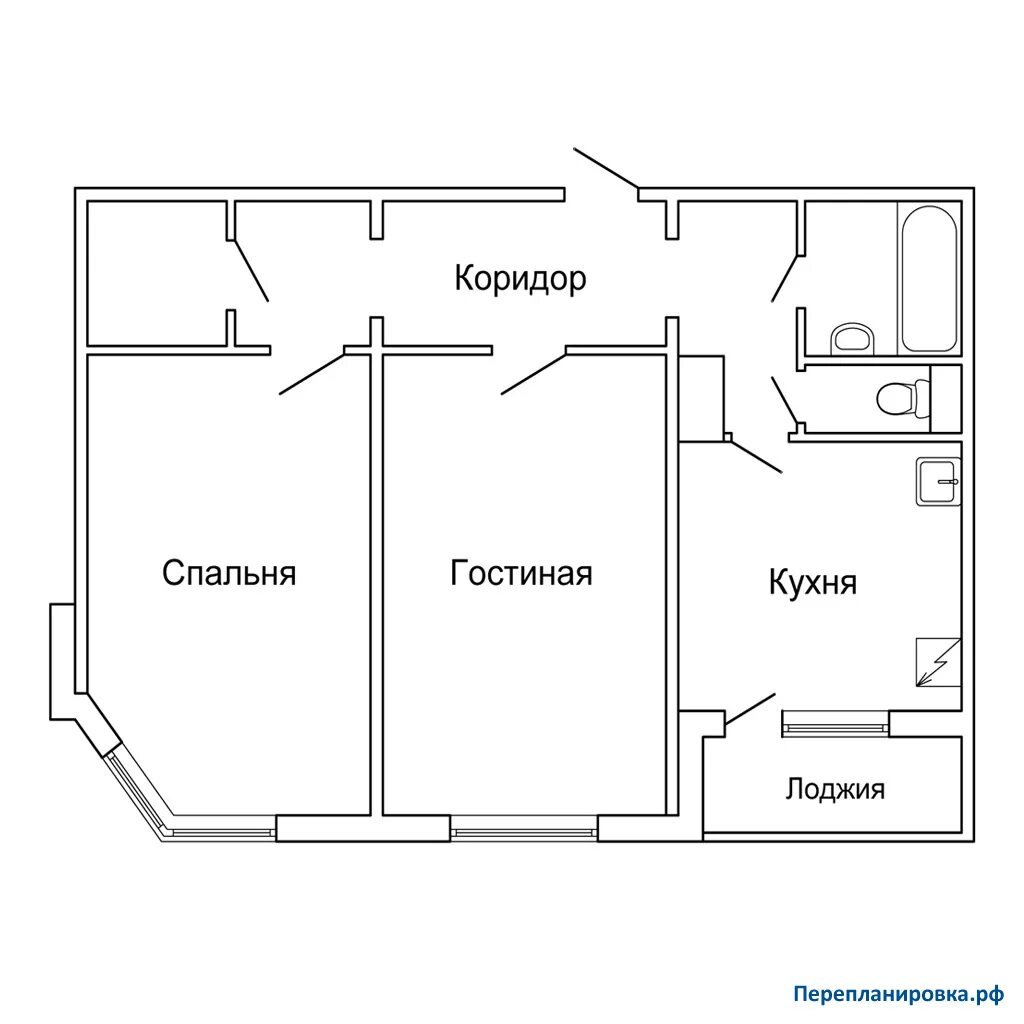 План двухкомнатной квартиры в многоэтажном.