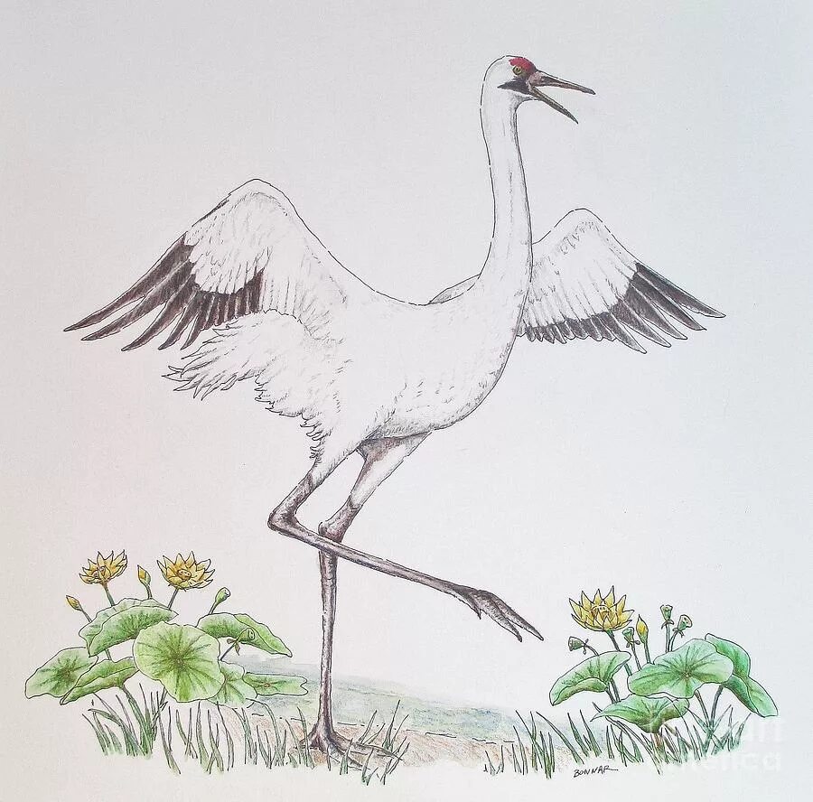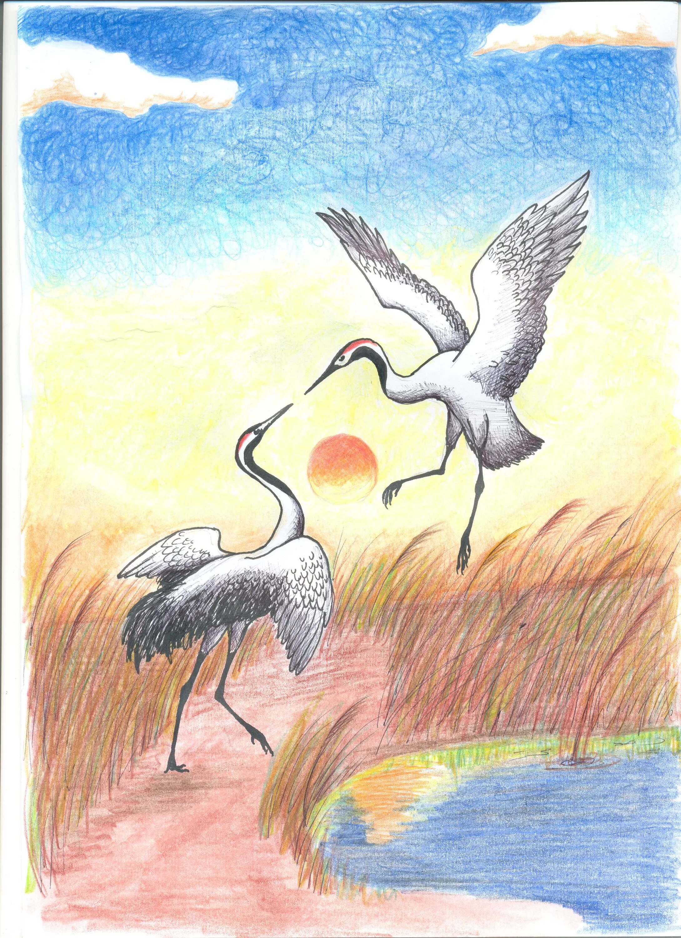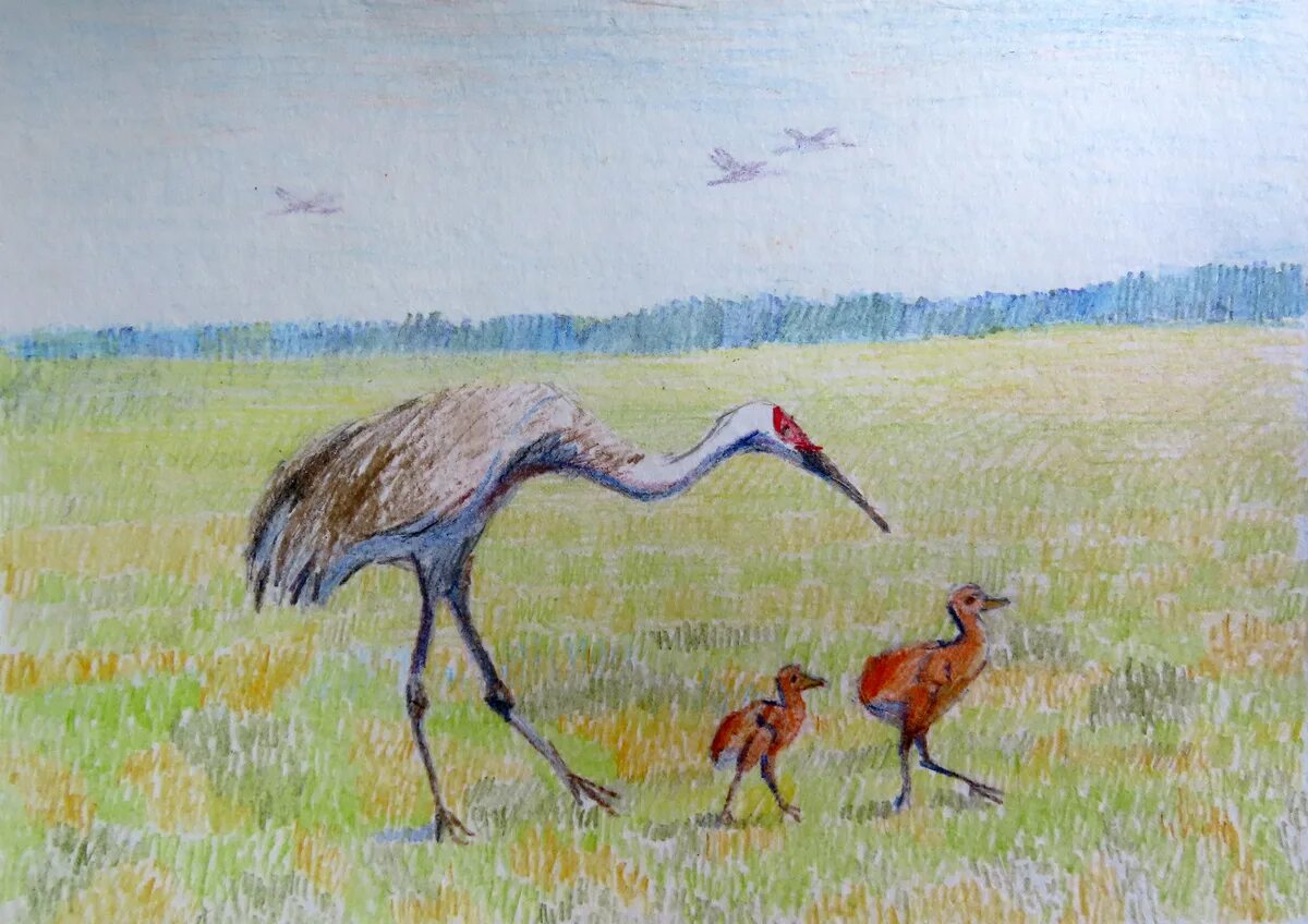 Журавль карандашом.